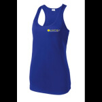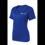 100% polyester wicking knit * Wicks moisture away from the body * Ladies' fit * Heat sealed label * Self-fabric binding at neck and armholes * Double-needle hemmed bottom
